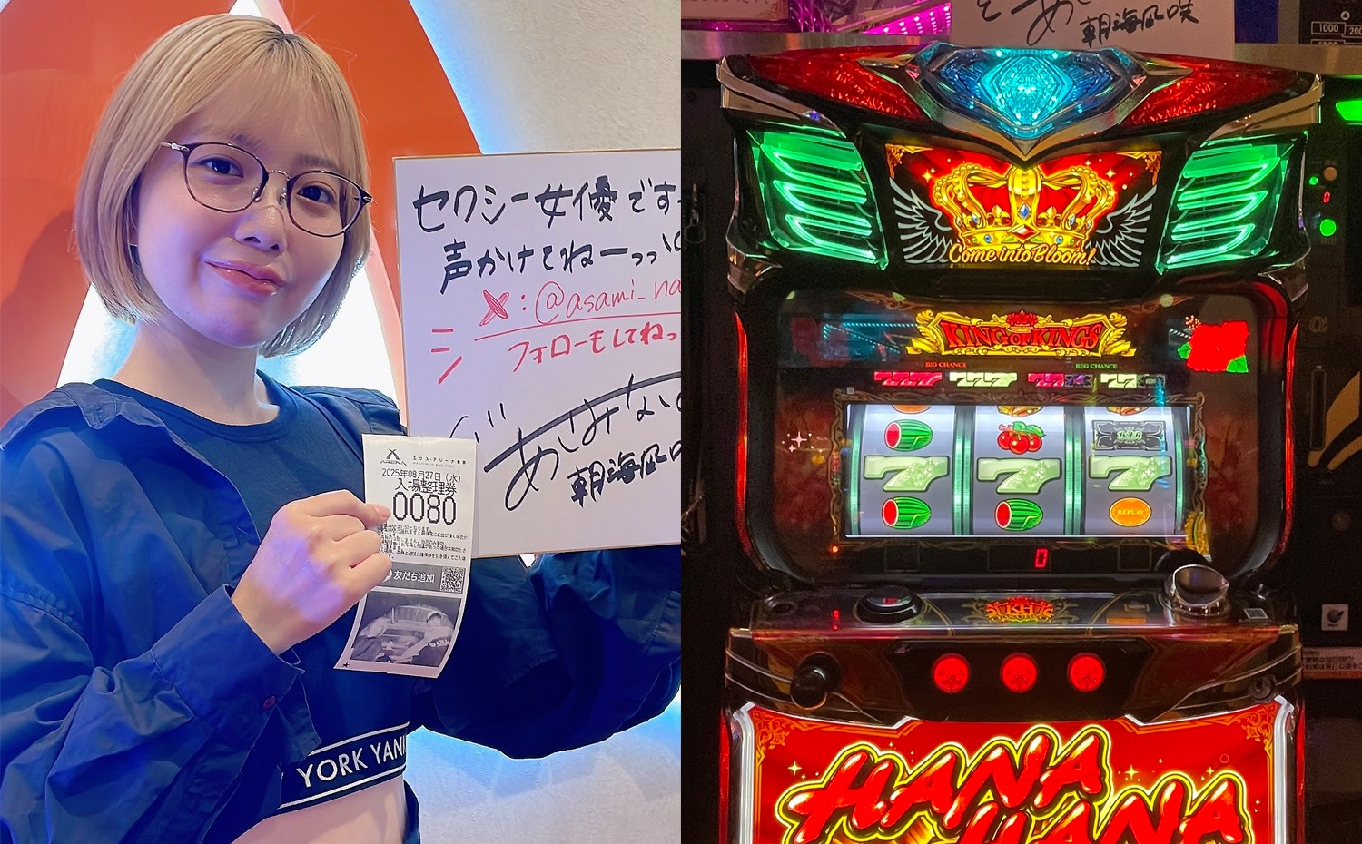 当日は大人のプロ活で「朝海凪咲」さんも来店! ホールの盛り上がりに花を添えていたぞ!!